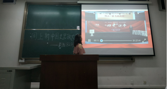 此次思政大课时间安排在周末,班长带领同学们按时收看了由人民网播出的“同上‘四史’思政大课”。
