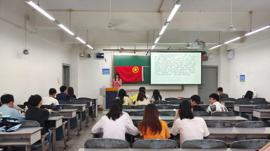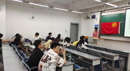 团课伊始,何莉娅向同学展示了以“青春向党,班团结合”为主题的报告,向各位团员及入团积极分子介绍了团章的由来和要求,并指出:作为新时代大学生,我们要摆正人生价值观,将青春向党才能更好地实现自己的人生价值,成为祖国的栋梁之材。之后,何莉娅依次从不同的方面为同学们讲解如何摆正人生价值观,同学们纷纷表示感受良多且受益匪浅。最后,何莉娅播放了一段“青春向党榜样”的视频,并进行了简短的总结,同时告诫同学们要努力为祖国做出贡献。