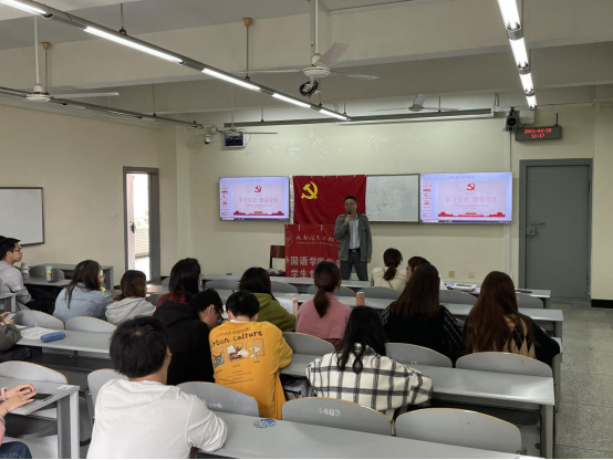 党委学生党支部在1403教室上党课。会议由杨昊书记主持。