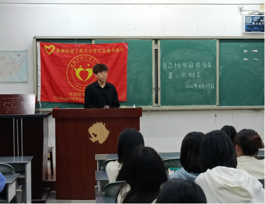 2021年4月25日晚六点,我校青志协外国语分会第二次例会在航空港校区4306教室举行。与会人员包括副会长胡祥洲、余霖等人。