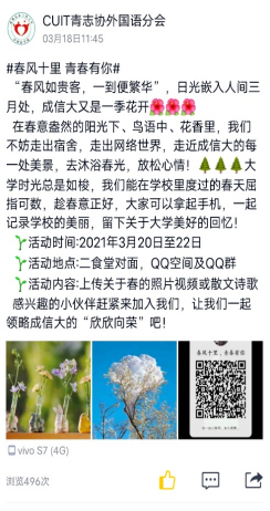 2021年3月20日至22日,为让同学们亲密接触校园,迎接春天,由听书网