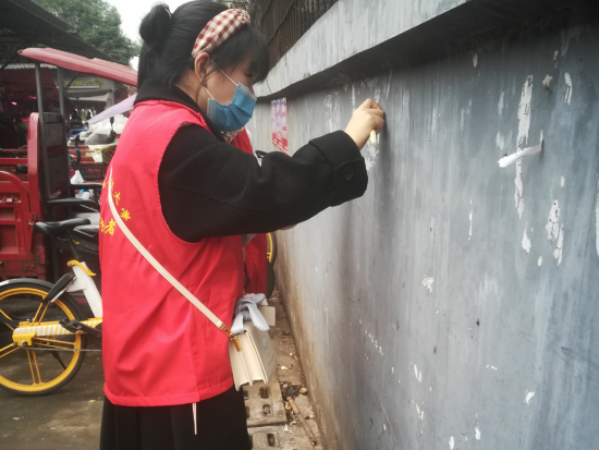 分会在四川省成都市西航港街道机场路举行了社区铲除小广告活动。