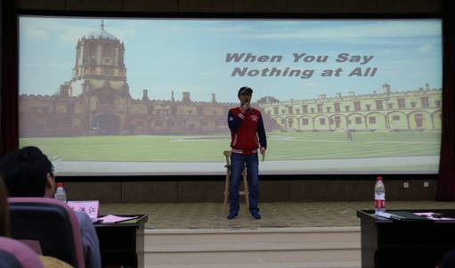 开幕式在同学们热烈的掌声中开始,首先是学校党委副书记马洪江致辞,他对本次外语文化节的顺利举办充满信心并鼓舞同学们学习外语,做中外交流的桥梁。党委宣传部部长陶若铭讲话并宣布第八届外语文化节开幕。随后进行的是开幕式文艺表演,形式内容异彩纷呈,包括歌曲演唱茉莉花,舞蹈表演 Uh-oh,诗朗诵《沁园春 雪》,英文歌吉他弹唱 Don't Look back in Anger,英文话剧《月亮的故事》以及歌曲 When You Say Nothing at All。最后是主持人介绍活动日程。到此,听书网
