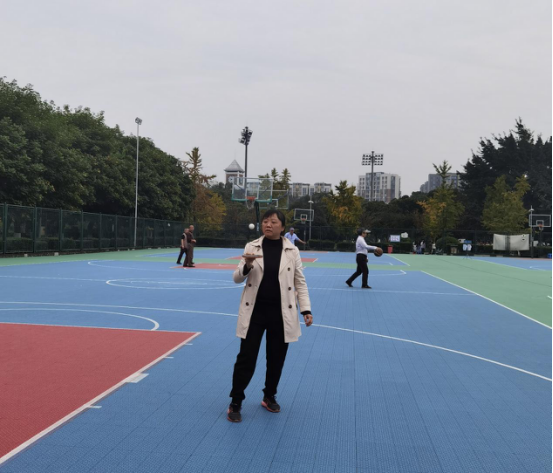 在裁判简单的规则讲解之后,比赛正式开始。第一项是定点投篮,每人5次投篮机会。首先上场的是女老师,投篮动作规范,一招一式,有模有样。篮球在空中划出了优美的抛物线,应声入网。加油声,喝彩声此起彼伏。男老师们上场了,须眉不让巾帼。角度,力度和弧度都恰到好处,篮筐在他们眼中像大海。越战越勇,高歌猛进。