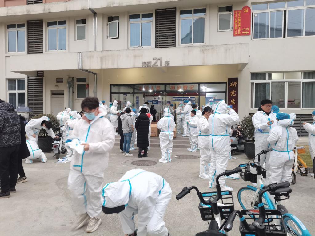 党委书记杨昊、分团委书记达苗第一时间前往现场,在校陪伴同学们,同医护人员和志愿者一起组织核酸单采。学校发现新冠感染者后,立即部署相应防控方案,为管控寝室配送盒饭。