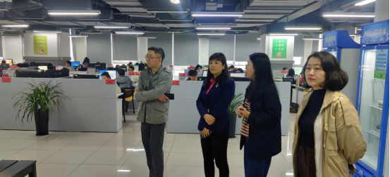 领导参观了该公司的各个工作部门和译员工作现场,并详细介绍了该公司的各项业务开展情况,重点谈到了公司在支持高校行业导师招募、实践基地建设、科研项目开展、学生线上线下实训、师资培训、课程共建、图书海外出版等业务方面与各个高校具有丰富的合作经验。