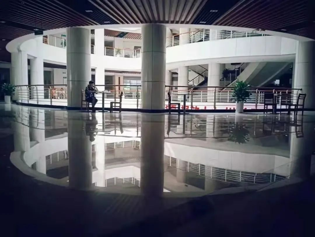 作者利用镜面效应,将一个普通的学习场景用倒影的形式展现了出来,使画面更加生动耐看,这充分展现了作者优秀的观察能力。