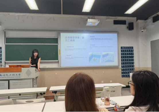 讲座内容涵盖专题阅读、翻译输出思维、学术规范、文献管理工具使用、翻译理论应用以及CAT工具实操等方面,并结合AI时代背景下翻译行业面临的挑战与机遇,鼓励学生善用技术工具,构建T型知识结构,尽早明确职业方向。