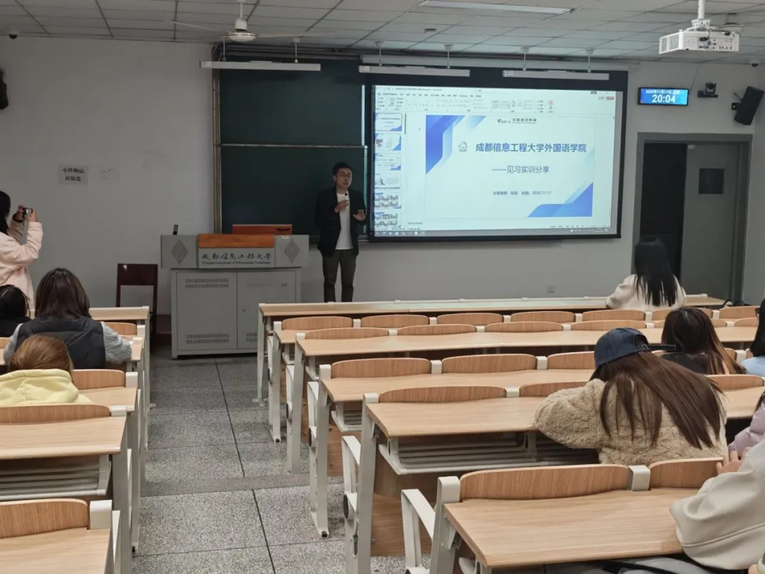 讲座现场,主讲人围绕学院本学期重点推出的两大短期实习实训项目展开详细解读。针对策马公司实训项目,着重介绍了为期一周的翻译工作坊核心内容,强调通过沉浸式实操体验,助力学子锤炼专业翻译技能,积累行业实战经验。
