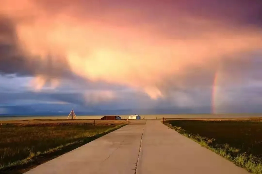 这幅作品构图工整,天空的部分冷暖过渡自然,细节丰富,地面部分中的小路形成了两条引导线,将人的视线拉到尽头的小屋上。整张片子很有意境,充分展现了天地之间的大美,是一张很不错的作品。